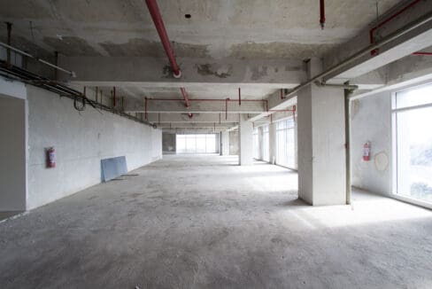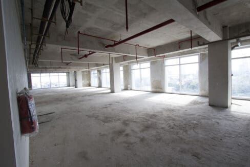 Natural light is a standout feature of the unit. Large floor-to-ceiling windows wrap around the perimeter, offering inspiring panoramic views of the urban skyline and lush greenery, while reducing reliance on artificial lighting during the day. The space is fully equipped with essential utilities, including a drop-ceiling acoustic system, recessed lighting, and efficient cassette-type air conditioning units to ensure a comfortable working climate year-round.