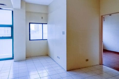 Affordable 1 bedroom condo with city views for sale in Mabolo, Cebu. This spacious 58 sqm unit offers a bright and airy living area, enhanced by large windows that flood the space with natural light while providing impressive views of the city. The open-plan layout creates a seamless flow between the living, dining, and kitchen areas, making it ideal for modern urban living. The kitchen is equipped with light wood cabinetry and sleek black countertops, offering both style and functionality. With tiled flooring throughout the living space, the condo exudes a clean, contemporary feel that's easy to maintain.