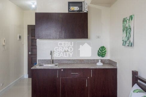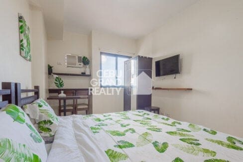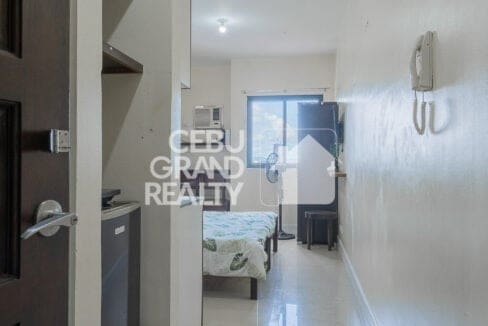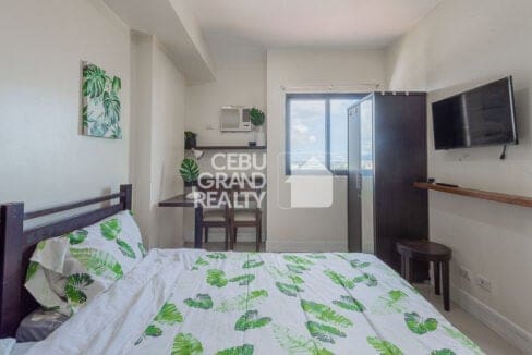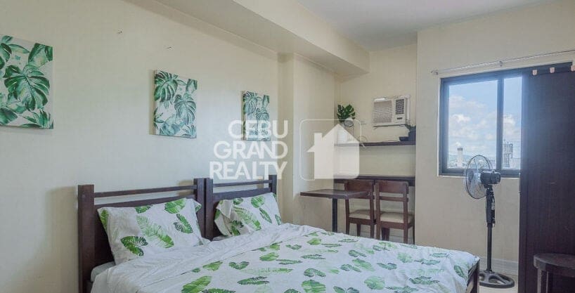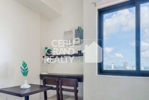 Still searching for an Affordable Studio for Rent in Grand Residences? Look no further! This fully furnished unit also boasts a functional workspace with a table and chairs positioned beside a large window, providing natural light and stunning city views. The bathroom is equipped with modern fixtures, including a pedestal sink, toilet, and tiled shower area, all designed with clean, neutral tones. With a wall-mounted TV, air-conditioning unit, and wardrobe for storage, this property truly offers the best in studio living near Cebu IT Park.