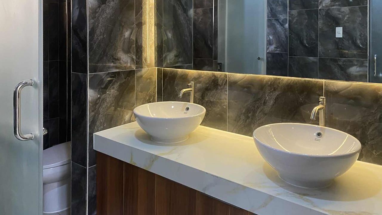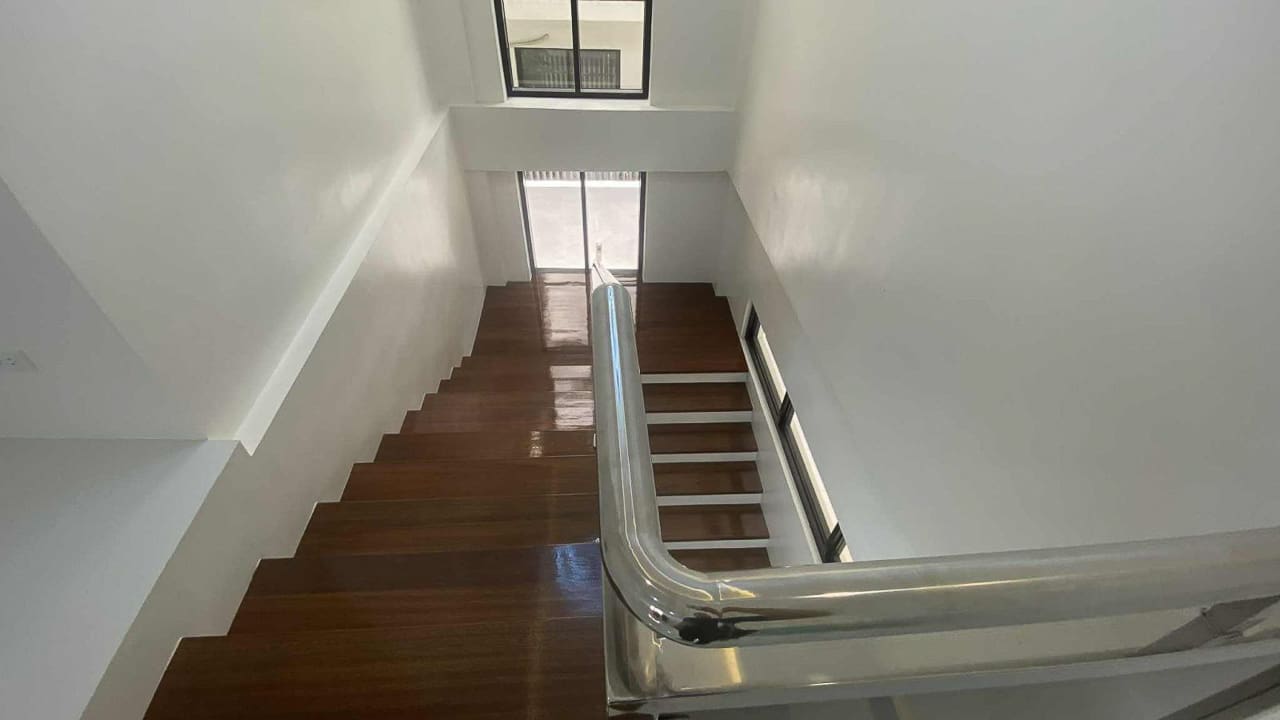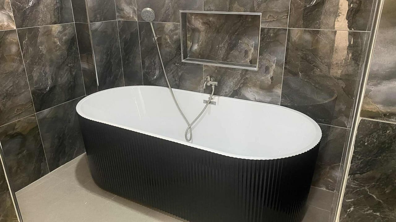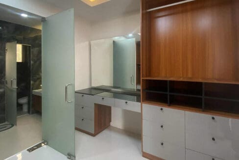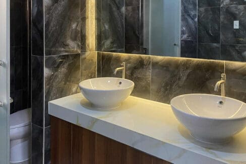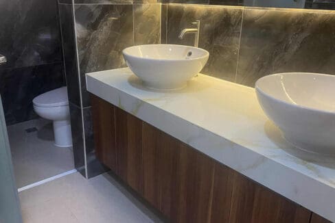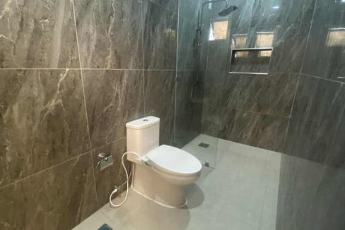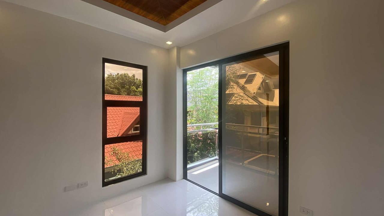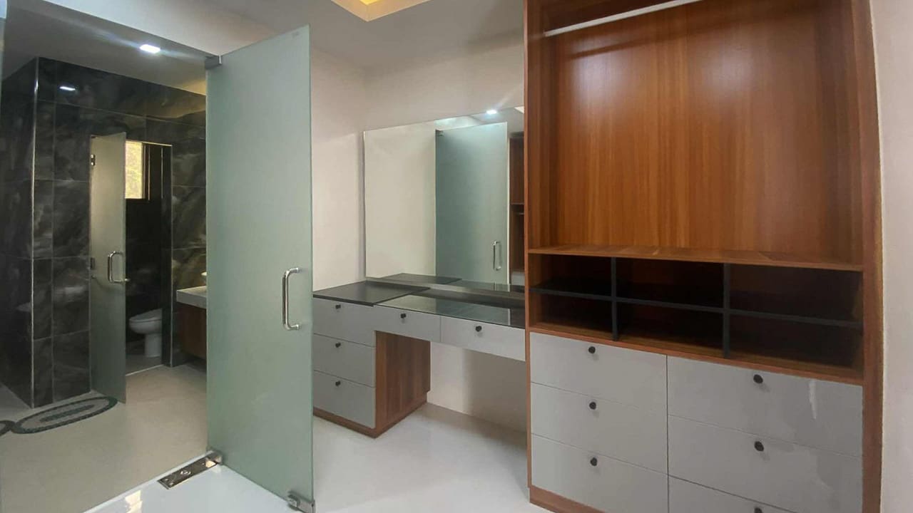 The heart of this new Consolacion home is undoubtedly its gourmet kitchen. A chef’s dream, it is impeccably designed with sleek, handleless grey cabinets, premium marble-patterned countertops, and a functional breakfast bar. Ascend the sculptural staircase to the private quarters upstairs, where the master suite serves as a true sanctuary. The level of detail in this newly built property is evident in the master suite, which features a spacious walk-in closet and a spa-inspired en-suite bathroom, complete with a luxurious freestanding tub set against a backdrop of dramatic, dark marble-style tiles.