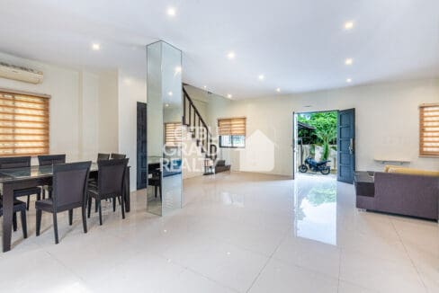 This home is ideal for families who value both indoor and outdoor living. With its large glass windows and neutral-toned walls, the interiors are filled with natural light and a refreshing ambiance. The dining area comfortably fits a full-sized table set, while the modern kitchen features granite countertops, ample storage, and an efficient layout for everyday cooking.