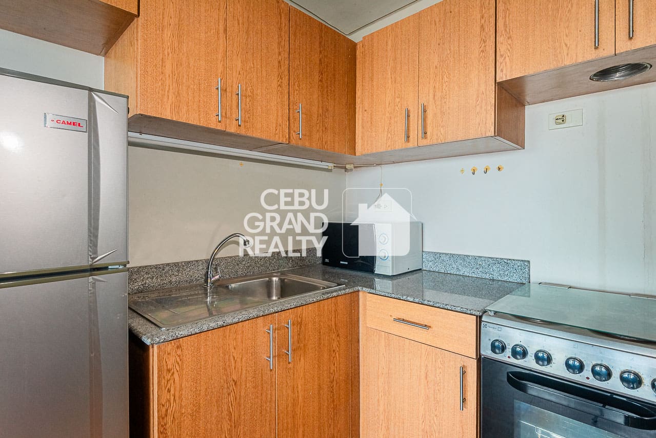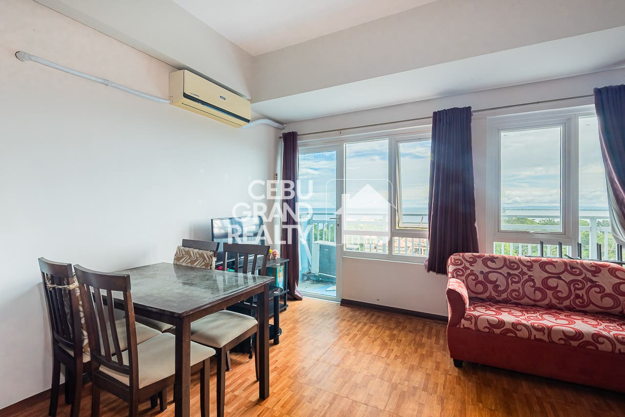 The interior of this Charming Studio with Panoramic Sea Views at Amisa Private Residences is very functional. First, the open-plan layout features warm wood-laminate flooring. Additionally, it comes fully furnished with a red patterned sofa and a dining set. Moreover, it includes a split-type air conditioning unit for your comfort. Meanwhile, the L-shaped kitchen is equipped with granite countertops and wood-finish cabinetry. As a result, it is perfect for preparing meals while you enjoy the coastal atmosphere.