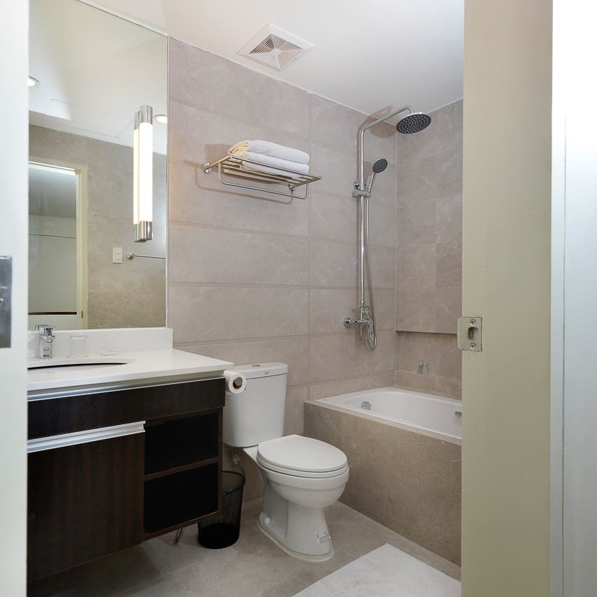 Moreover, this extra space provides great flexibility, which is rare in most condo layouts. The smart design of this Chic and Stunning Loft Penthouse with Modern Interiors uses every bit of space for your comfort. As for the private spaces, the main bedroom is a peaceful retreat. It features warm hardwood floors and a large window with lovely city views. Furthermore, the unit includes two full bathrooms; one has a relaxing bathtub, while the other offers a modern walk-in shower. This loft penthouse for sale in Cebu ensures luxury and convenience.