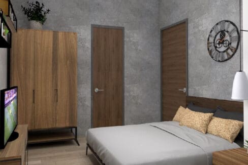 The unit itself welcomes you with a chic, industrial-inspired look. First, an eye-catching concrete-finish accent wall provides a bold, modern background like you'd find in a stylish condo with gardens and pools. This is then perfectly balanced by the warmth of wood-grain flooring and sleek, custom cabinets. Consequently, this thoughtful mix of textures creates a feel that is both modern and inviting. Furthermore, the open-plan layout smartly connects the kitchen, dining, and living areas, making the most of the space and light. This flexible design is perfect for everything from quiet evenings to entertaining friends. In short, this is your personal oasis, a place to recharge and thrive, all within this Contemporary Stylish Condo with Lush Gardens and Pools.
