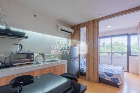 Experience modern living with this cozy and convenient studio condo in One Oasis Cebu, located in the vibrant neighborhood of Mabolo. This fully furnished unit features a comfortable sleeping area, built-in cabinets, and sliding glass doors that open to a private balcony with relaxing greenery views. The compact kitchen is equipped with essential appliances such as a refrigerator, microwave, induction stove, and range hood, perfectly complemented by wood-paneled cabinets and a sleek countertop. A clean and modern bathroom with a separate shower area completes this practical and stylish space.