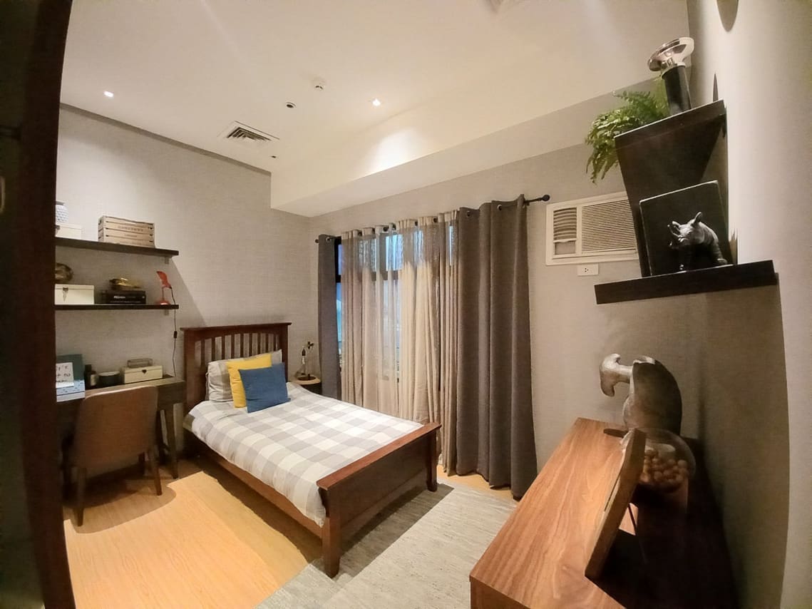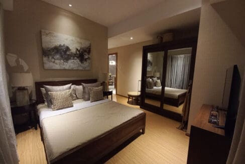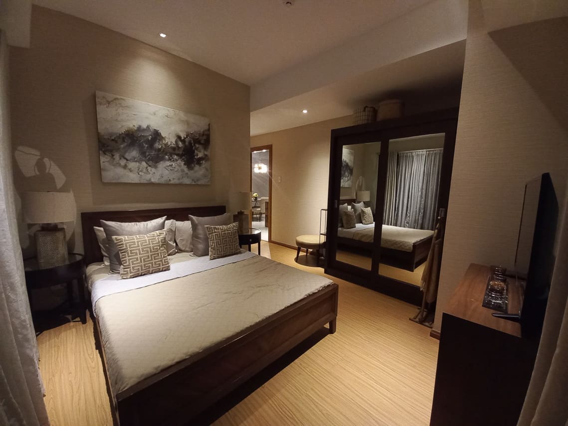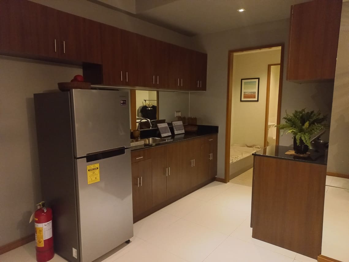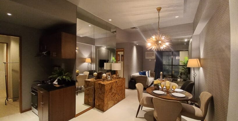 Living is easy at this Elegant Condo with Balcony in Galleria Residences. First, this home sits inside the popular Robinsons Galleria Cebu Complex. Because of this, shopping and dining are just steps away from your door. Next, the interior features a modern design with high-end furniture. You will surely love the stylish starburst light in the dining room. Also, large mirrors make the living space feel bright and open. Therefore, this Elegant Condo with Balcony in Galleria Residences is perfect for a busy city life.