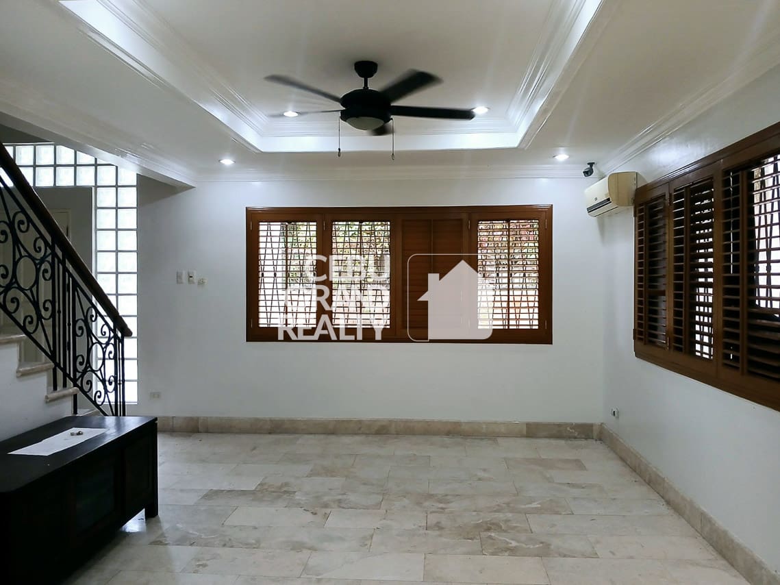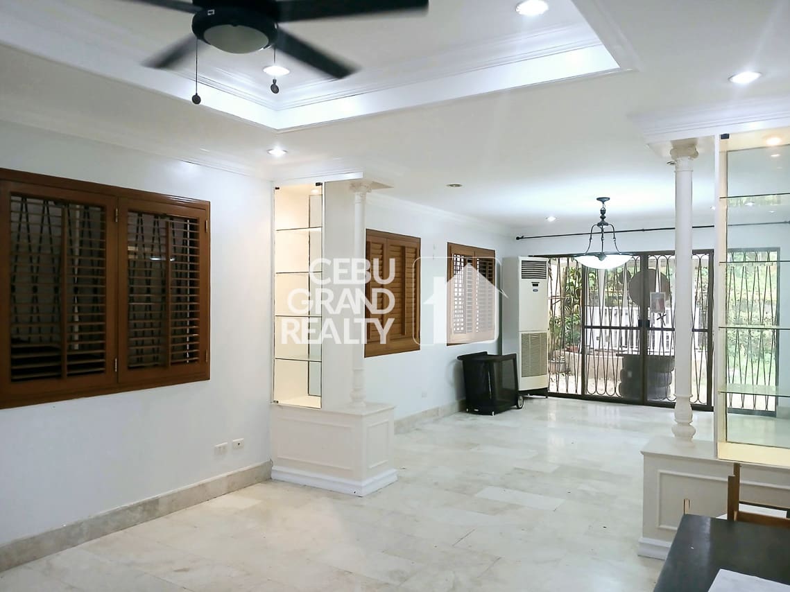 To begin with, from the moment you step inside, the Elegant Family Home with Gazebo Garden in Maria Luisa Cebu impresses with its light-filled open spaces and high-quality finishes. In addition, the interior features elegant marble flooring and classic wood-slat window shutters that create an air of old-world charm. Furthermore, the seamless flow between the indoors and the lush exterior makes entertaining effortless for any occasion. For instance, the large sliding doors connect the living area directly to the greenery outside.
