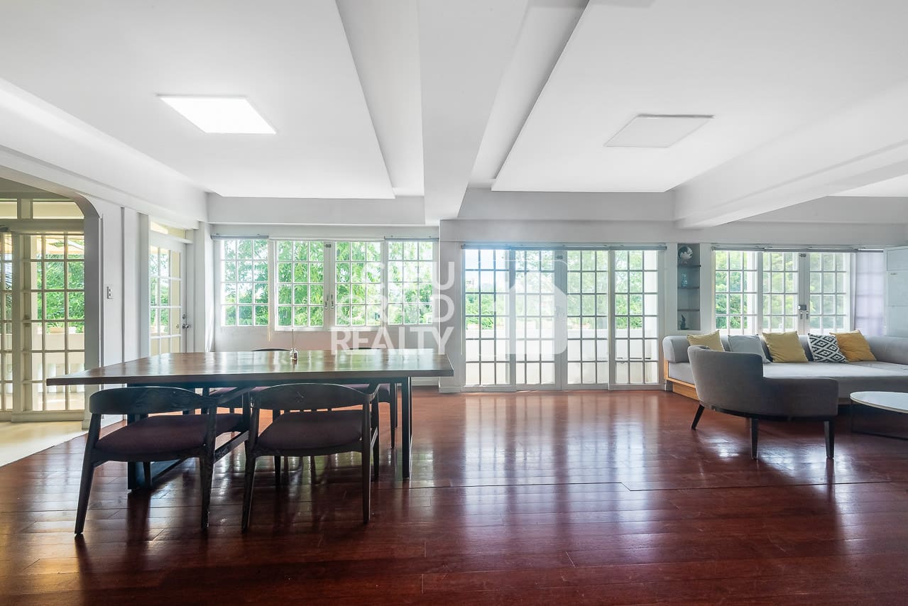 Step into a world of unparalleled luxury and space with this expansive penthouse oasis with unrivaled golf course views. This penthouse with a golf view for rent in Banilad is perfectly positioned in the highly sought-after district of Cebu City. This is not just a residence; it is a statement of sophisticated urban living. From the moment you enter, the sheer scale of the open-concept design captivates you. Natural light pours in through vast walls of windows, illuminating the rich hardwood floors and creating an atmosphere of warmth and grandeur that flows seamlessly throughout this bi-level home.