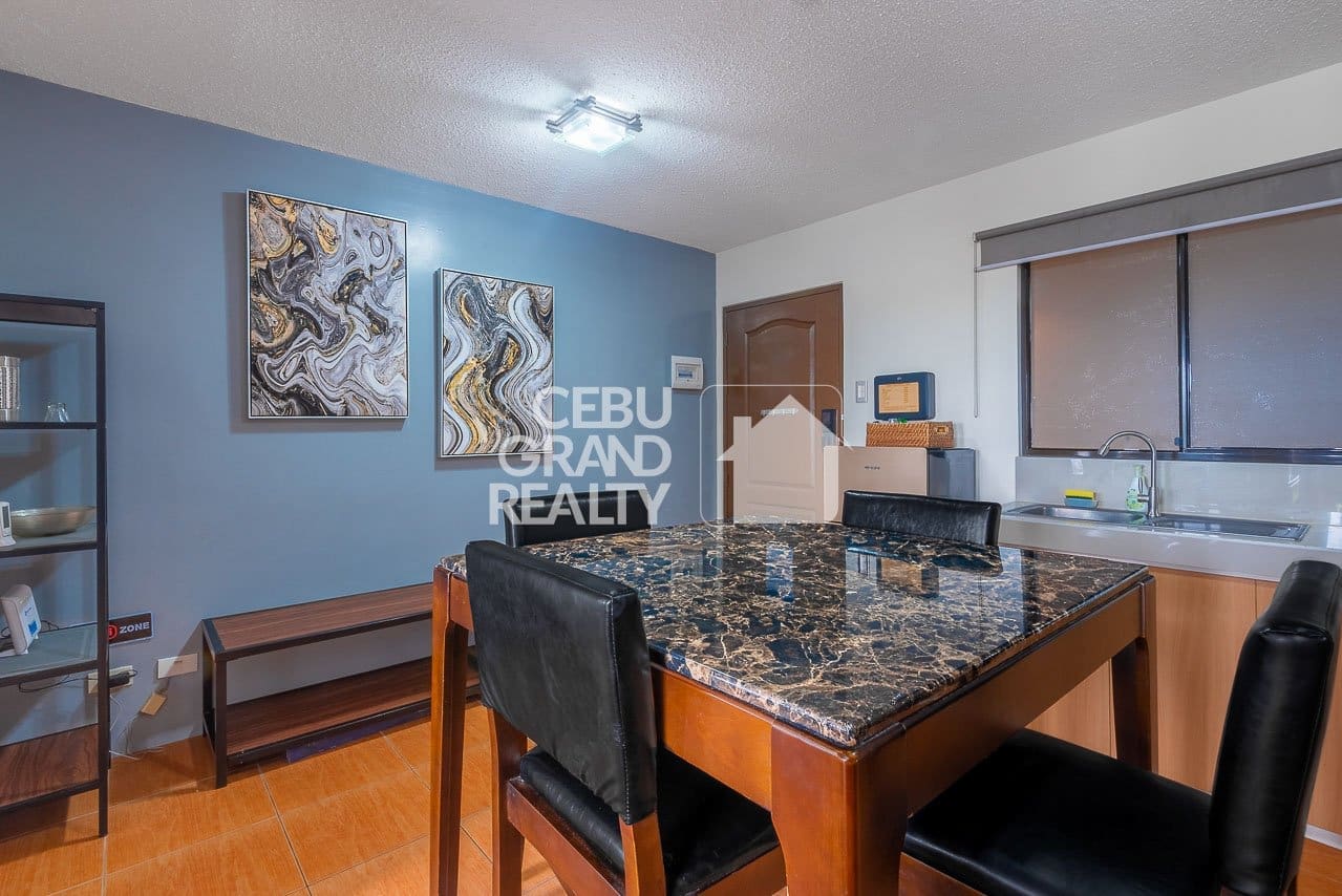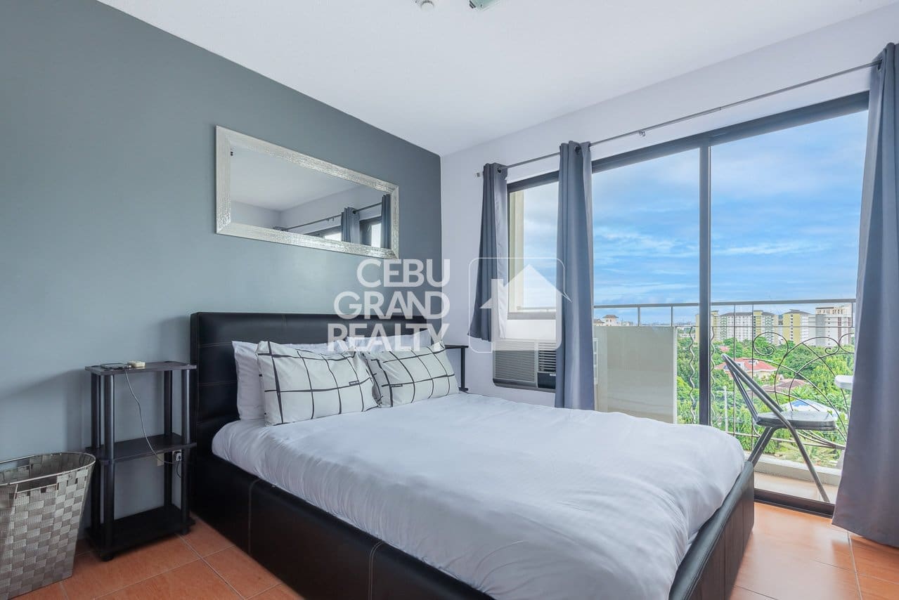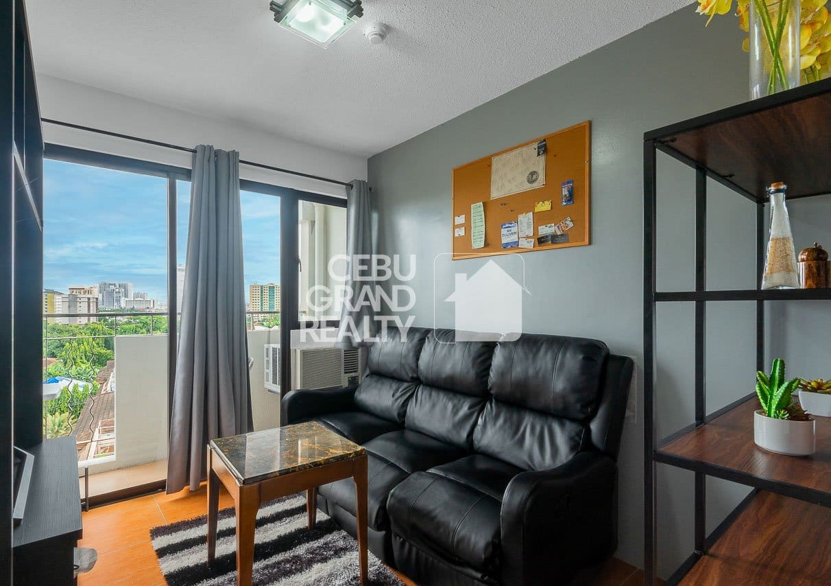 Discover a perfect blend of modern comfort and city convenience with this fully furnished condo with balcony & scenic views in One Oasis, Mabolo, Cebu. Designed for urban dwellers, this stylish unit features a cozy living area with a black leather couch, a sleek entertainment center with a flat-screen TV, and a chic coffee table. Large sliding glass doors open to a private balcony, offering stunning city views and allowing fresh air and natural light to fill the space.