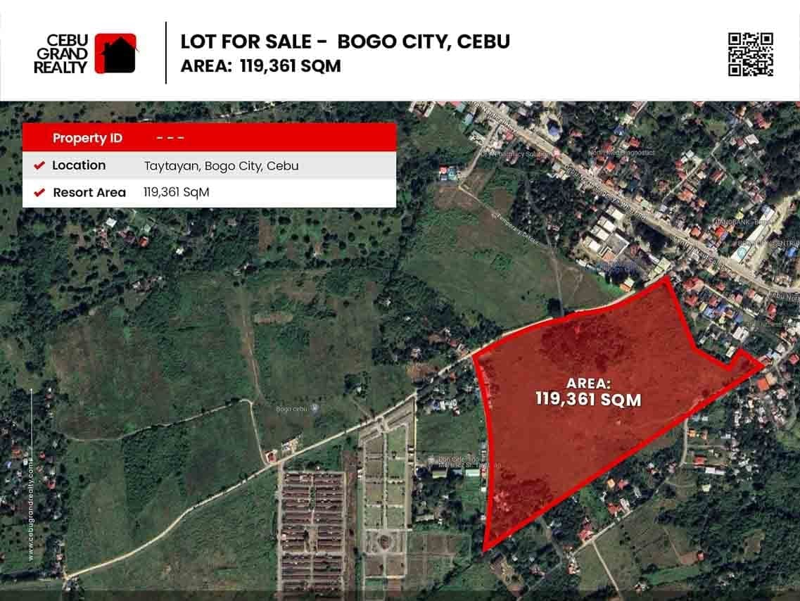 Don't miss this Investment Opportunity Large Lot for Sale in Bogo City Cebu, featuring an expansive 119,361 SQM of prime land suitable for commercial, residential, or resort development. Strategically located in Taytayan, Bogo City, this property is situated in a rapidly growing area, making it an excellent investment for developers and business owners. With its proximity to major roads, business districts, and residential communities, this lot offers outstanding potential for long-term appreciation. Whether you are planning to develop a subdivision, shopping mall, industrial park, or vacation resort, this property provides a strong foundation for a high-return investment.