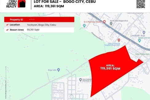 This Investment Opportunity Large Lot for Sale in Bogo City Cebu is conveniently positioned near key establishments such as Cebu Provincial Hospital, Landbank Bogo City, and Arko Fitness Gym, ensuring accessibility and convenience for future developments. The surrounding infrastructure supports a wide range of real estate ventures, making it an ideal location for both residential and commercial projects. Its large land area allows for flexible design and development options, catering to investors who seek to maximize value in one of Cebu’s fast-growing cities.