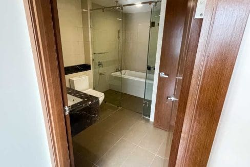This modern 1 bedroom condo in The Alcoves offers sleek design and stunning panoramic city views. The bright and open living room features floor-to-ceiling windows, while the bedroom boasts rich wood-style flooring and built-in storage. The marble bathroom, with its glass-enclosed shower and bathtub, adds a touch of luxury, and the spacious balcony is perfect for relaxing. Located in Cebu Business Park, this unit is the ideal combination of affordability and urban convenience.