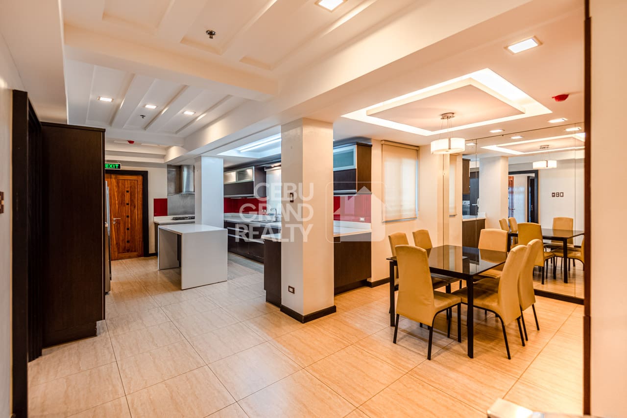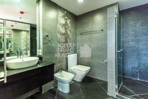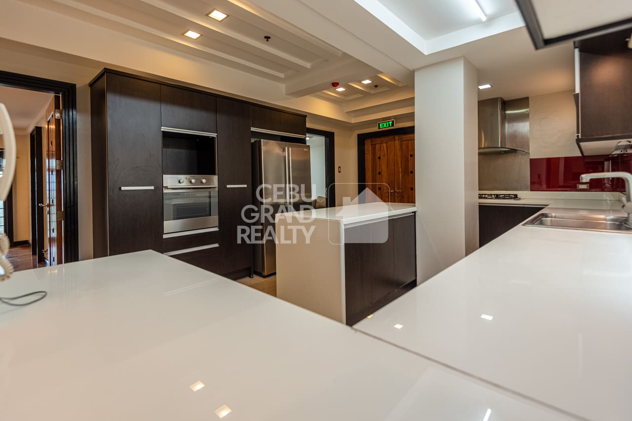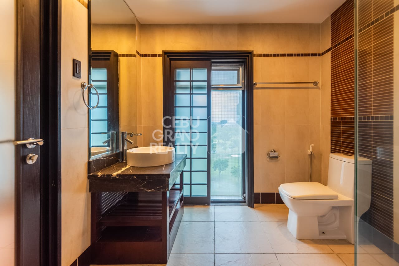 From the moment you enter, you will find large, open living spaces that flow nicely. The main lounge, for instance, has wide windows that frame the lively city. Meanwhile, a separate family area offers a cozy second spot with rich, polished hardwood floors. Adjacent to this, the modern kitchen is a cook's dream. It is fully-equipped with high-end dark wood cabinets, white counters, and a bold red glass backsplash. It also has a useful center island. In fact, it's designed for both casual meals and big parties. Beyond the living areas, each of the three bedrooms is a private space, especially the master suite. This quiet escape has a special bathroom. Here, it features a separate soaking tub, a glass walk-in shower, and a beautiful, light-filled zen garden. Truly, this Luxurious Modern Penthouse with Stunning Cebu Views is more than a home; it's a statement.