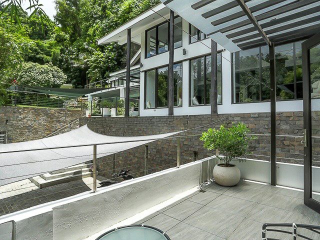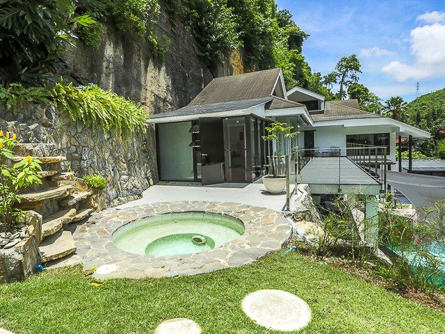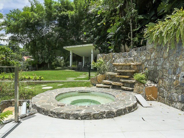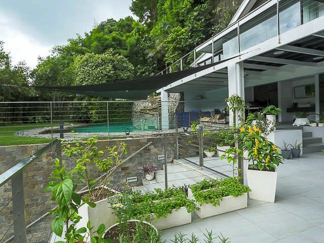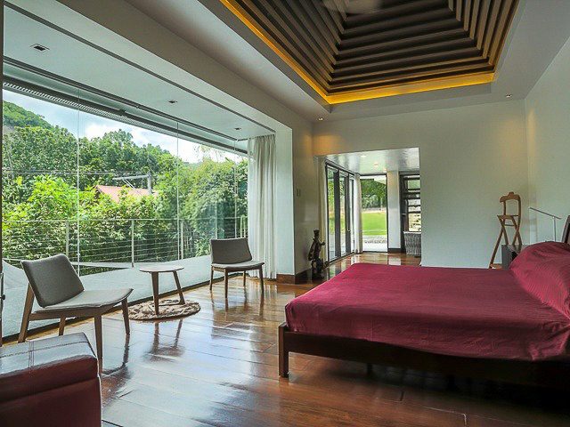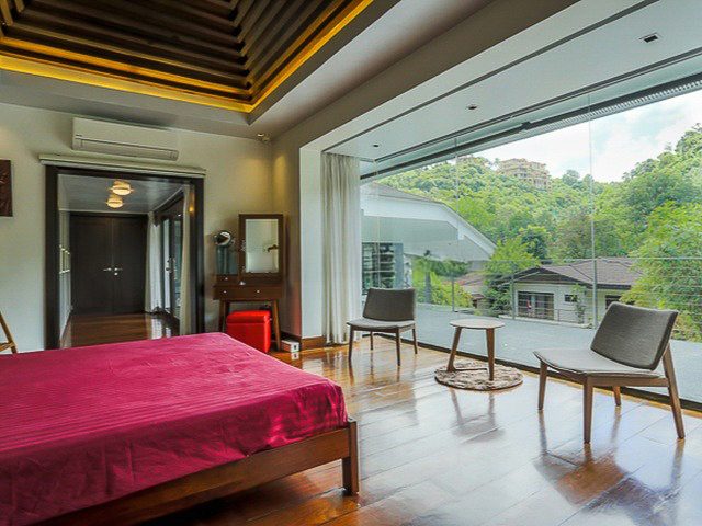 In addition to these views, the kitchen looks very sleek with its white cabinets and bright lighting. Moreover, the property features a calm pool that looks out over the green valley. Because of its unique location, this Luxury Hillside Residence with Panoramic Views in Maria Luisa has a special cliffside look where the natural rock becomes part of the home. As a result, you can own a piece of the best area in Cebu with this one-of-a-kind Luxury Hillside Residence with Panoramic Views in Maria Luisa. Similarly, the bedrooms are designed to be peaceful retreats. On the other hand, the living areas are perfect for hosting guests. Along with these interior spaces, the outdoor decks provide the perfect spot for relaxation. Finally, to conclude, this estate offers a lifestyle that is truly hard to find anywhere else.