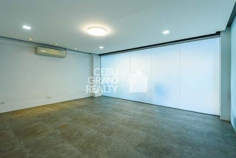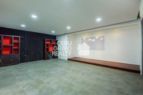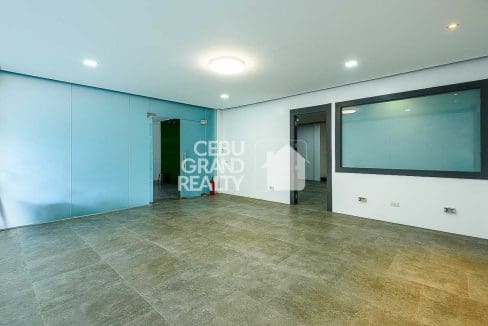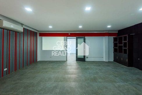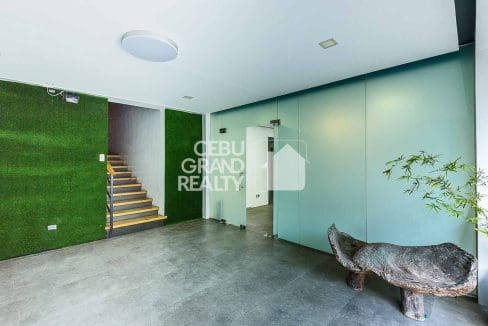 Discover a modern office space designed to inspire creativity and productivity, featuring artificial grass walls, spacious minimalist rooms with gray tiled flooring, and glass doors and partitions. This vibrant meeting room, with red and gray striped wallpaper and built-in shelving, offers ample storage and functionality. Enjoy the comfort of an air-conditioned office with recessed lighting and a large whiteboard for presentations. The unique design elements, including a rustic wooden bench and a functional wooden platform for presentations, blend contemporary and natural aesthetics. Schedule a viewing today and elevate your business in this stylish and versatile office space.