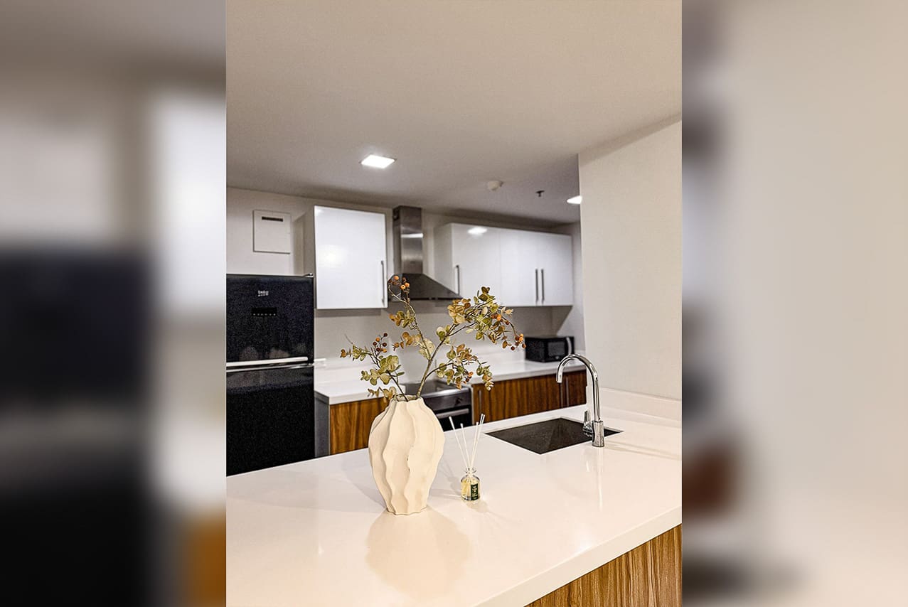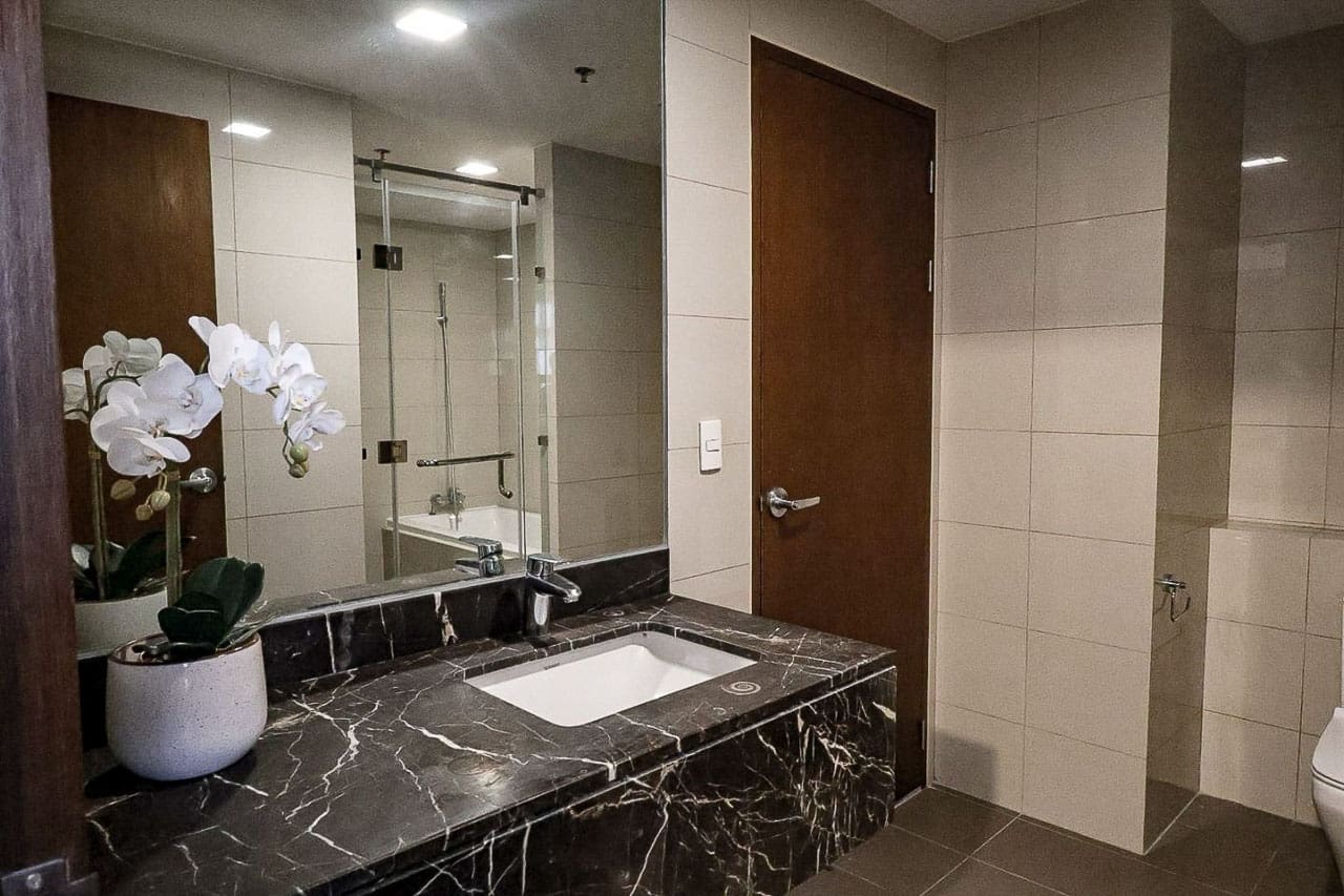 Inside, this Modern High Floor Condo Zen Suite at The Alcoves features a clean and simple design. For example, the kitchen has a sleek breakfast bar and nice wooden cabinets. Additionally, the bedroom is very peaceful. Because it has dark wood floors and a desk, the space is both pretty and useful. Moreover, you can walk straight from the bedroom to the balcony to enjoy the fresh air. As a result, this Modern High Floor Condo Zen Suite at The Alcoves truly represents the luxury of Ayala Land Premier. Lastly, the direct mall access adds a level of convenience that is hard to find elsewhere.