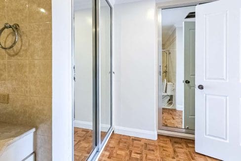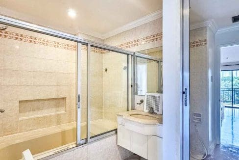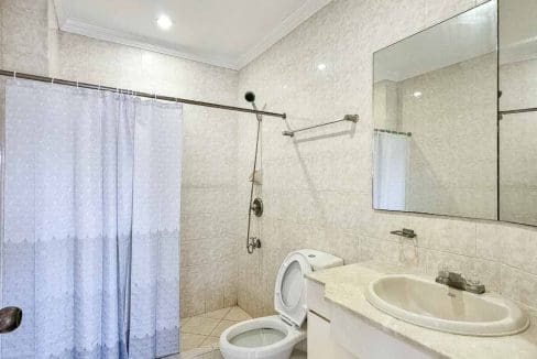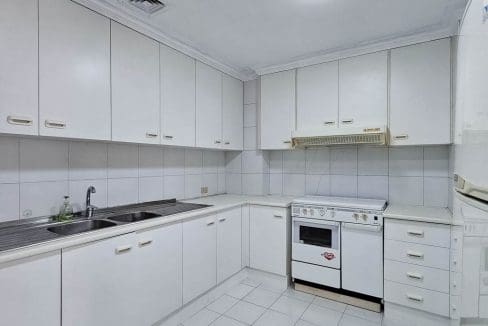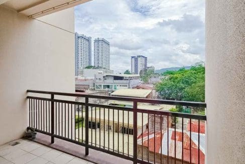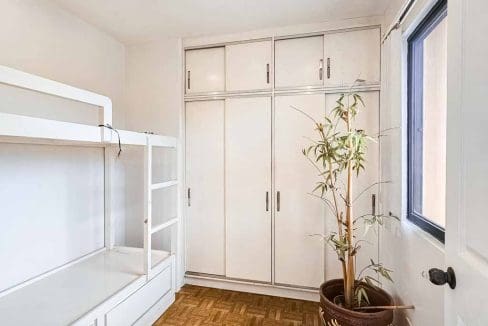 The fully equipped kitchen condo rental in Cebu City boasts ample counter space and modern white cabinetry. A dedicated utility area with a deep sink and direct access to the balcony adds convenience. This bright and airy condominium for rent with large windows in Cebu offers the perfect blend of tranquility and practicality, making it a must-see home in the heart of the city.