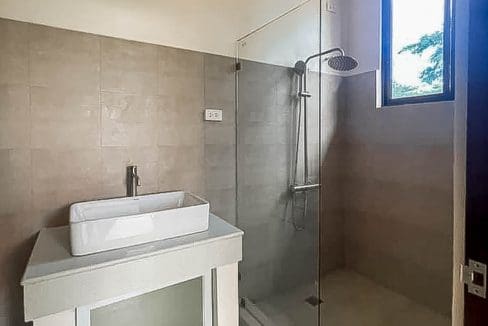 -En suite bathroom with modern fittings (Glass shower enclosure, Quartz vanity top - sleek basin with high-rise tap)