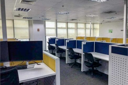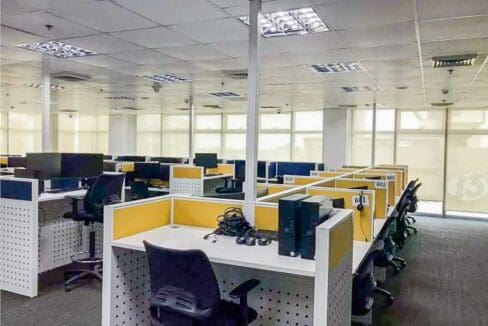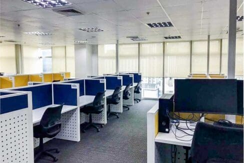As you walk into the office, you're greeted with a secure turnstile entrance, carpeted flooring, and an open layout filled with modular workstations. Each cubicle is equipped with ergonomic chairs, computer monitors, CPUs, and cable management already in place. From high-speed internet infrastructure to private meeting rooms, training areas, and executive offices, every detail is ready for use.