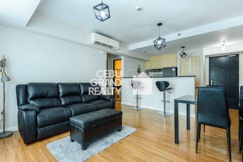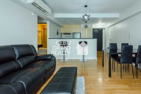 Experience modern living at its finest in this stunning two-bedroom condo in Cebu, offering panoramic city and mountain views from a spacious private balcony. The open-concept living room and kitchen are flooded with natural light, featuring sleek black leather furnishings, granite countertops, and light wood cabinetry. This high-rise condo blends style and functionality, making it the perfect urban retreat.