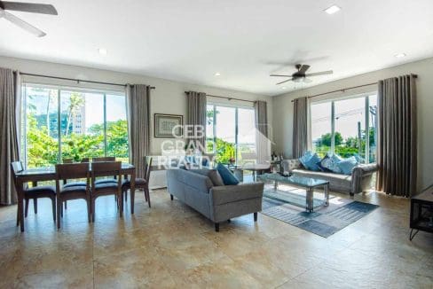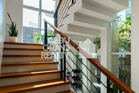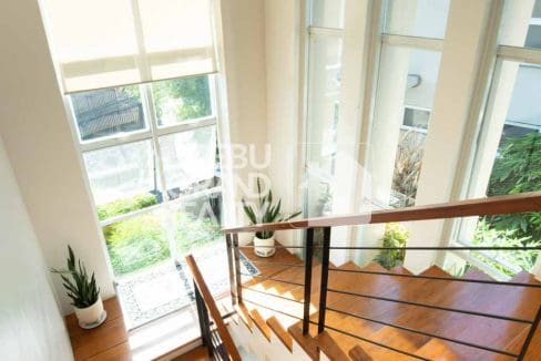 The home's design effortlessly connects the indoors with the outdoors. Large glass doors open to a private, lush garden, creating your own personal tropical oasis. This outdoor space is perfect for morning coffee, evening cocktails, or simply unwinding after a long day in your house for rent in Panorama Banawa. It's a peaceful extension of this magnificent Serene Luxury Residence, offering a private sanctuary from the city's hustle and bustle.