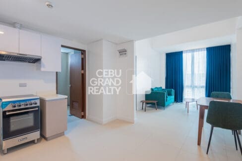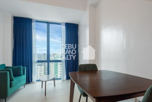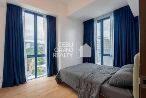 This Stunning Condo with Breathtaking City Views also offers a cozy and stylish bedroom, fitted with a plush bed, elegant headboard, and panoramic windows with blackout curtains for restful nights. Step out onto the private balcony, where you can relax and enjoy panoramic views of Cebu’s vibrant skyline, lush greenery, and even glimpses of the ocean.