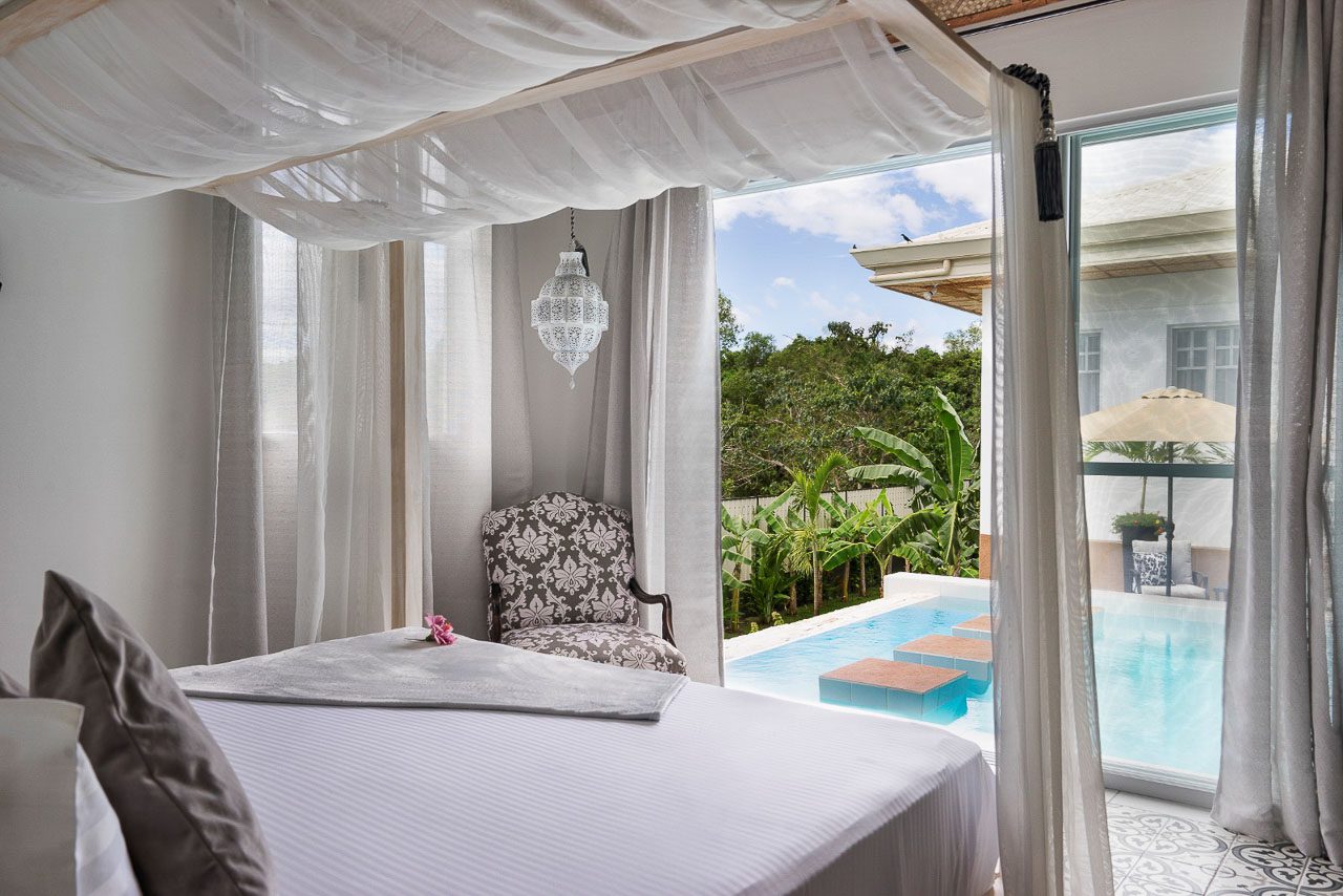 To begin with, this home is built with great care. It features high ceilings made from woven bamboo. Additionally, the open layout lets in plenty of fresh air. Furthermore, every part of this Stunning Luxury Villa with Private Pool in Panglao Island feels high-end. For example, the kitchen has smooth stone counters and pretty tiles. Moreover, the cozy bedrooms open right onto a private middle yard. Similarly, the house feels like a small art gallery. In fact, it has old Chinese cabinets and soft sofas that fit the island vibe perfectly.