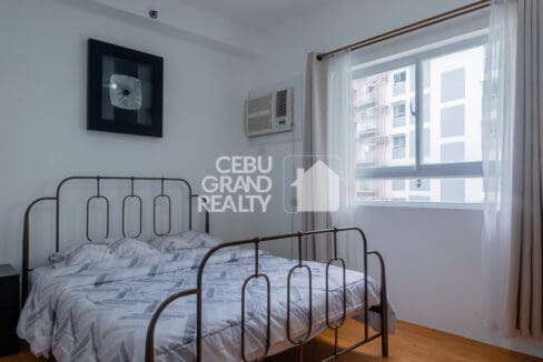 This Stylish Condo with Bright Living Area in Mivesa Garden Residences boasts a functional kitchen with wooden cabinetry, granite countertops, and essential appliances, including a stainless steel range hood and a stove. The master bedroom is furnished with a sleek dark wooden bed frame and minimalist decor, while the second bedroom features a light wooden bed frame and a study desk. Both rooms are equipped with air-conditioning units for maximum comfort. The bathroom is clean and modern, offering a walk-in shower with a rain showerhead. Step out onto the balcony to enjoy views of lush greenery and the community swimming pool, creating a serene retreat within the city.