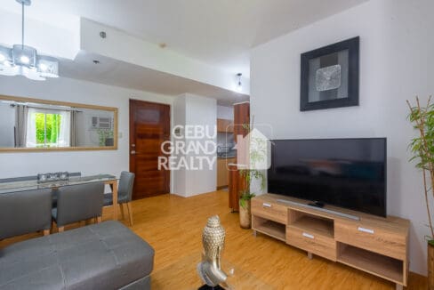 Experience modern and cozy living at Mivesa Garden Residences with this Stylish Condo with Bright Living Area in Mivesa Garden Residences, located in the vibrant area of Lahug, Cebu. This fully furnished 2-bedroom condominium offers a perfect blend of style, comfort, and functionality. The spacious living area features a modern gray sectional sofa, a glass coffee table, and large windows adorned with beige curtains that allow plenty of natural light to brighten the space. Adjacent to the living area is a dining setup with a glass-top table and cushioned chairs, perfect for intimate meals or entertaining guests.