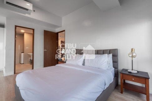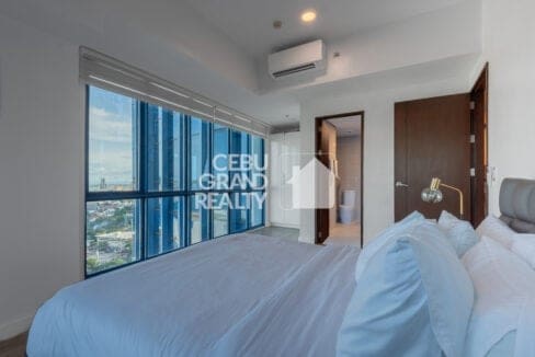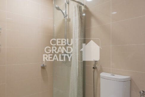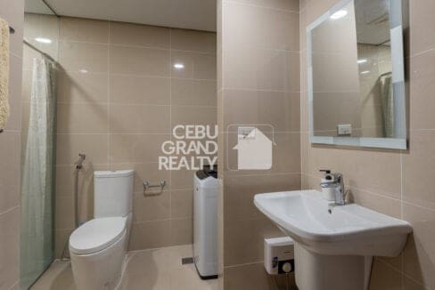 The bedroom serves as a peaceful retreat with a padded headboard, comfortable bedding, and floor-to-ceiling windows that provide stunning city views. A well-designed bathroom with a glass-enclosed shower and a dedicated laundry area ensures everyday convenience. Living in this Stylish Fully Furnished Condo for Rent in Cebu IT Park also means being steps away from premier dining, shopping, and entertainment options.