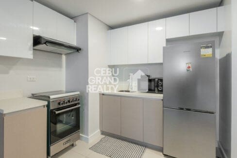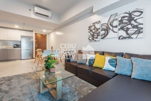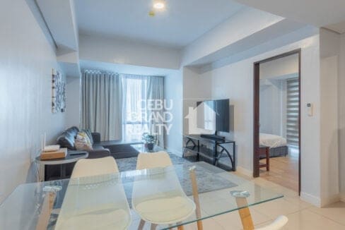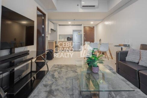 This Stylish Fully Furnished Condo for Rent in Cebu IT Park boasts a cozy living area with a sleek leather sofa, a flat-screen TV, and a glass coffee table, perfect for unwinding after a busy day. The open dining area and modern kitchen, equipped with stainless steel appliances and built-in cabinetry, add a touch of practicality to the stylish interiors.