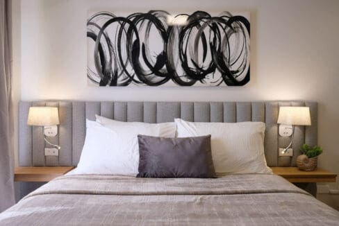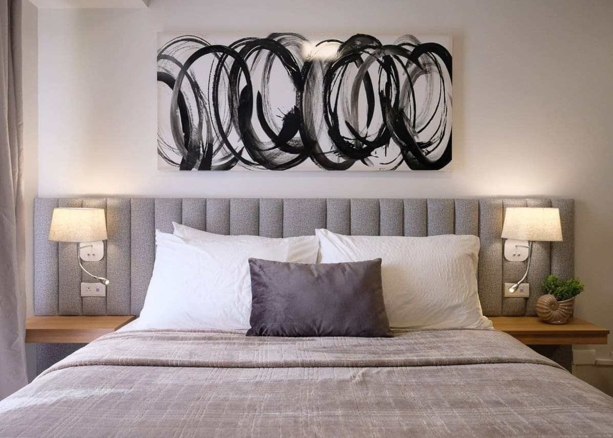 • Wall-mounted lamps and minimalist abstract wall art