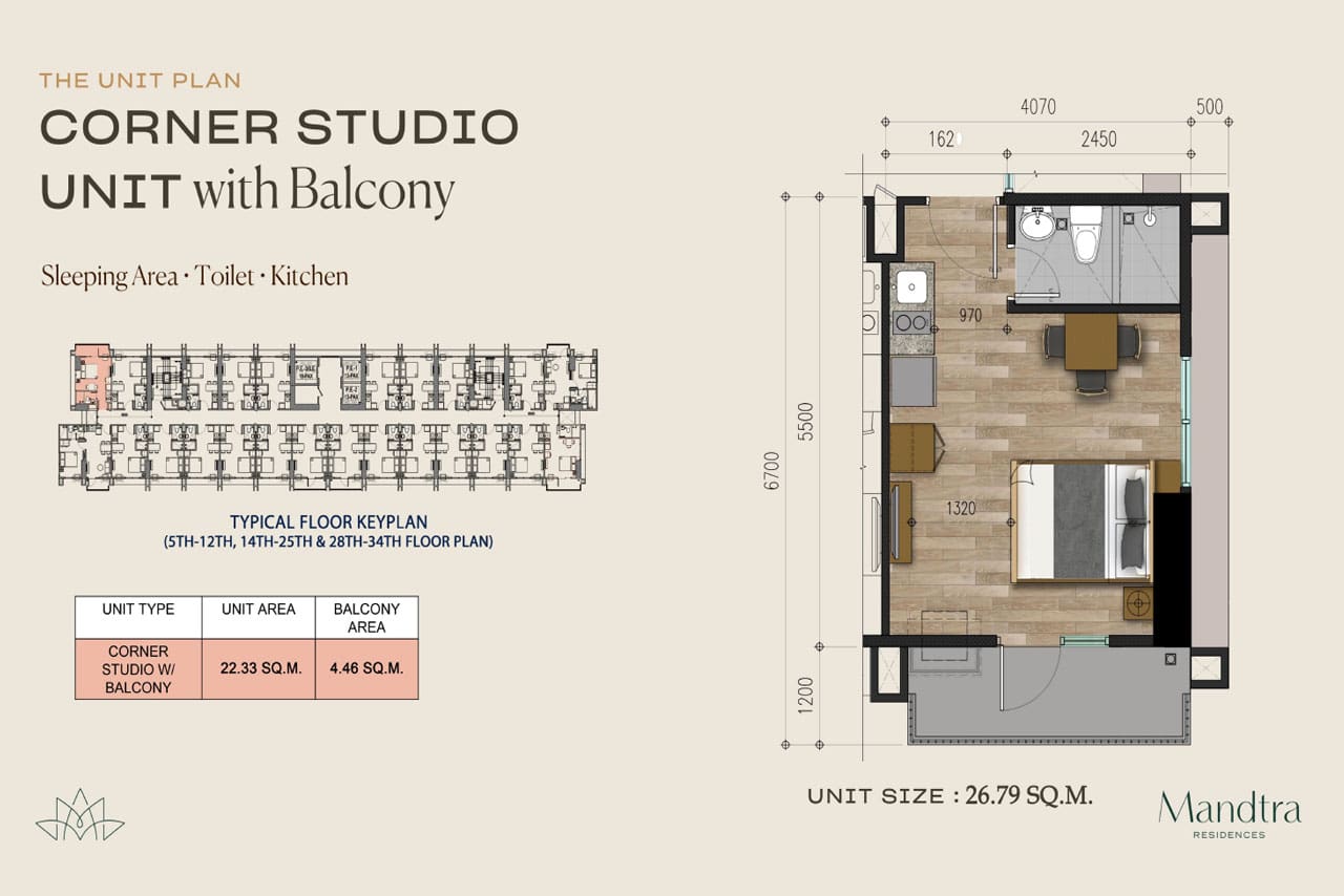 For example, you can take a refreshing dip in the stunning adult swimming pool. Alternatively, you can maintain your health goals in the state-of-the-art fitness gym or find peace in the manicured courtyards. Moreover, for families, the dedicated children's play area is a safe and joyful space. The elegant function room is also perfect for hosting gatherings. Meanwhile, the tranquil wellness lounge and on-site chapel provide spaces for quiet reflection.In short, this premier development provides a secure and inspiring environment, making this Timeless Chic Corner Studio with Balcony an even more desirable investment. Truly, inquiring about this corner studio with balcony for sale could change your lifestyle.