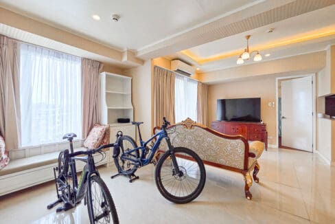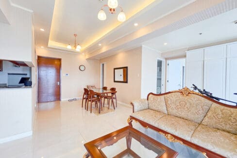 Step into an upscale living space with scenic horizon, nestled high above the bustling city. This fully furnished condo blends classic sophistication with modern comfort — from its plush designer furniture and intricate wood finishes to its bright, airy interiors framed by floor-to-ceiling windows. The elegant living room features a statement sofa set and opens up to a balcony that offers breathtaking views of Cebu’s mountains and skyline.