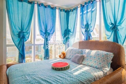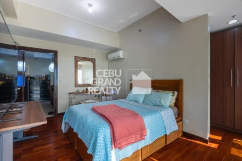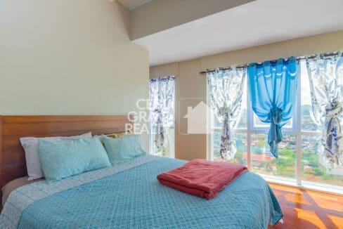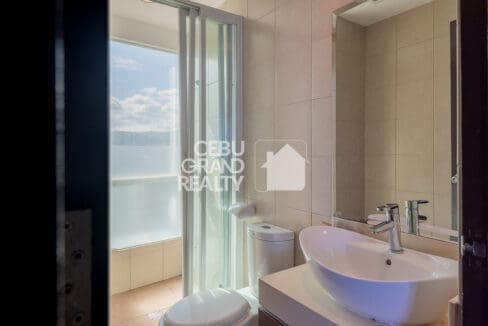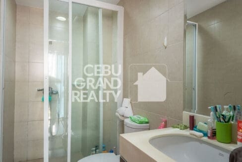 The bedrooms in this Well-Designed Condo with Stylish Décor & Open Spaces are bright and welcoming, featuring large windows, air conditioning, and cozy beds with stylish linens. Wake up to natural light streaming through the curtains, making every morning feel refreshing and energizing in this Well-Designed Condo with Stylish Décor & Open Spaces in Cebu. The bathroom is modern and well-maintained, equipped with a glass-enclosed shower, a vanity with ample storage, and neutral-toned tiles for a clean and contemporary look.