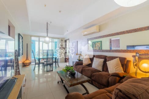 Experience comfort and elegance in this Well-Designed Condo with Stylish Décor & Open Spaces, perfect for those seeking a cozy yet sophisticated home in Cebu. This fully furnished 2-bedroom unit boasts a warm and inviting ambiance, featuring plush brown sofas, a large, mounted mirror, and carefully selected lighting to enhance the living space. The open-plan layout seamlessly connects the living, dining, and kitchen areas, creating a spacious and airy feel.